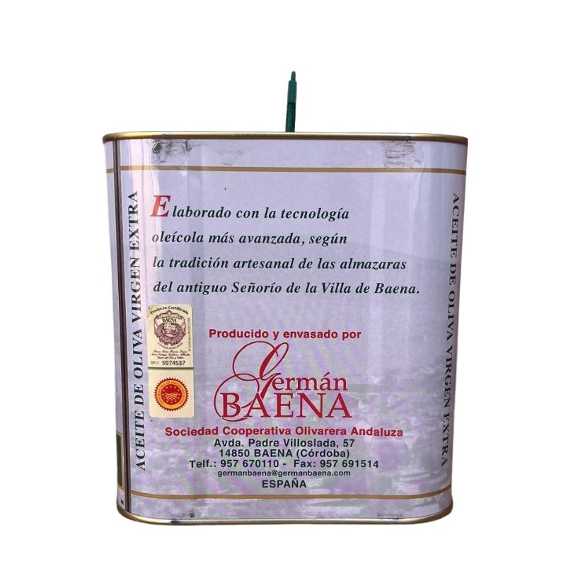 El aceite de oliva virgen extra sin filtrar Duque de Baena 2,5 litros es un AOVE tradicional de la comarca de Baena (Córdoba), reconocido por su autenticidad y calidad superior. Se elabora bajo el sello de la Denominación de Origen Protegida (D.O.P. Baena), que garantiza su origen y excelencia.